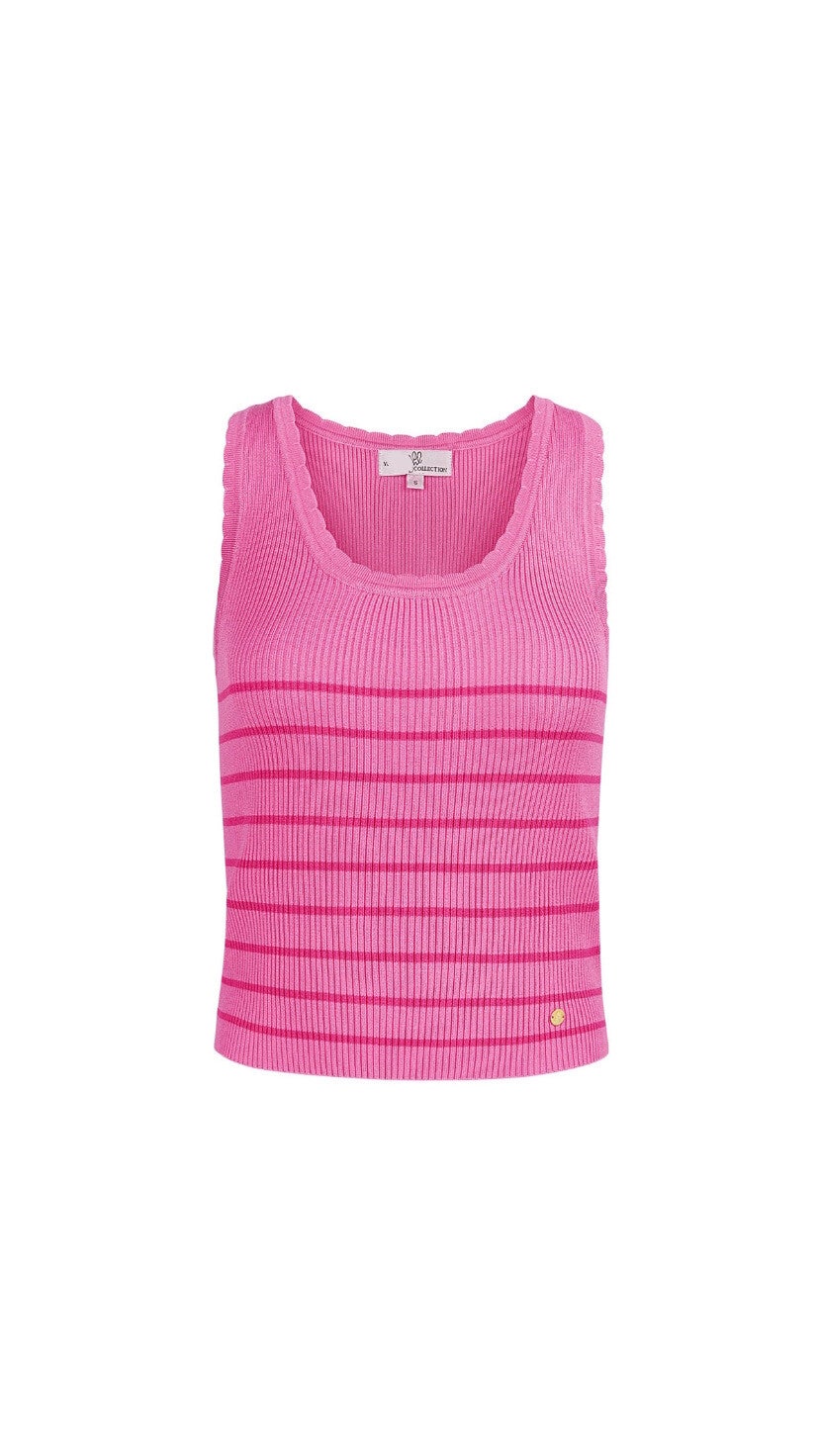 This sleeveless, striped top with vertical relief and classic edge is a must-have for you. The top can be combined with a blazer or worn alone.