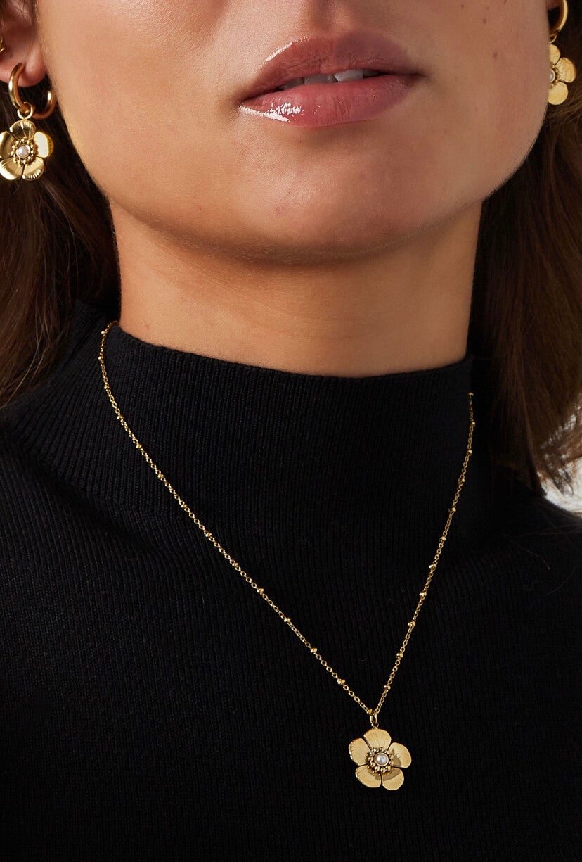Necklace Flower White Stone Silver