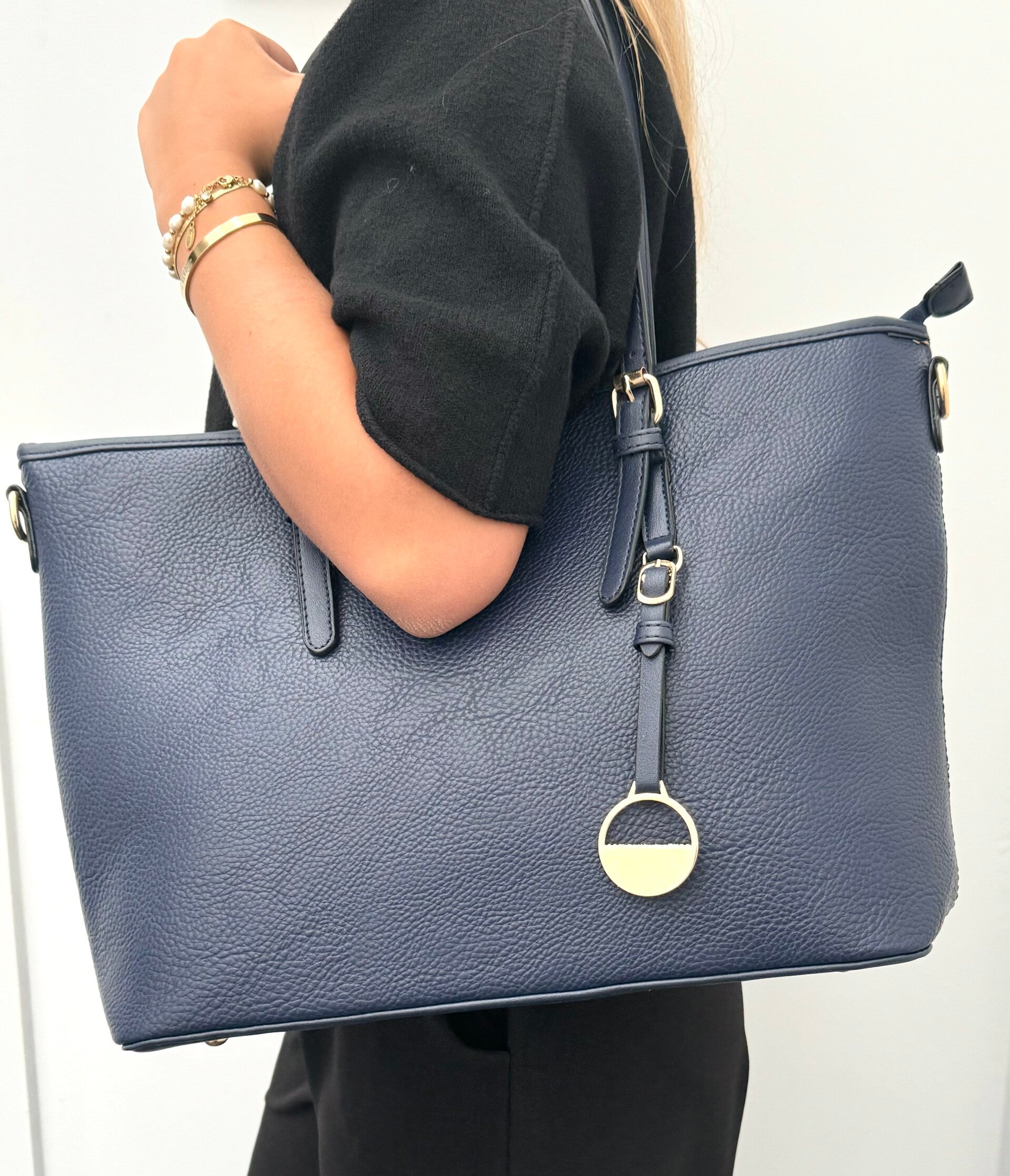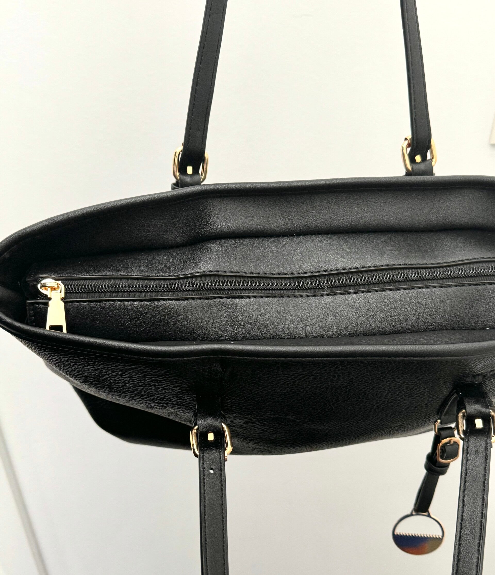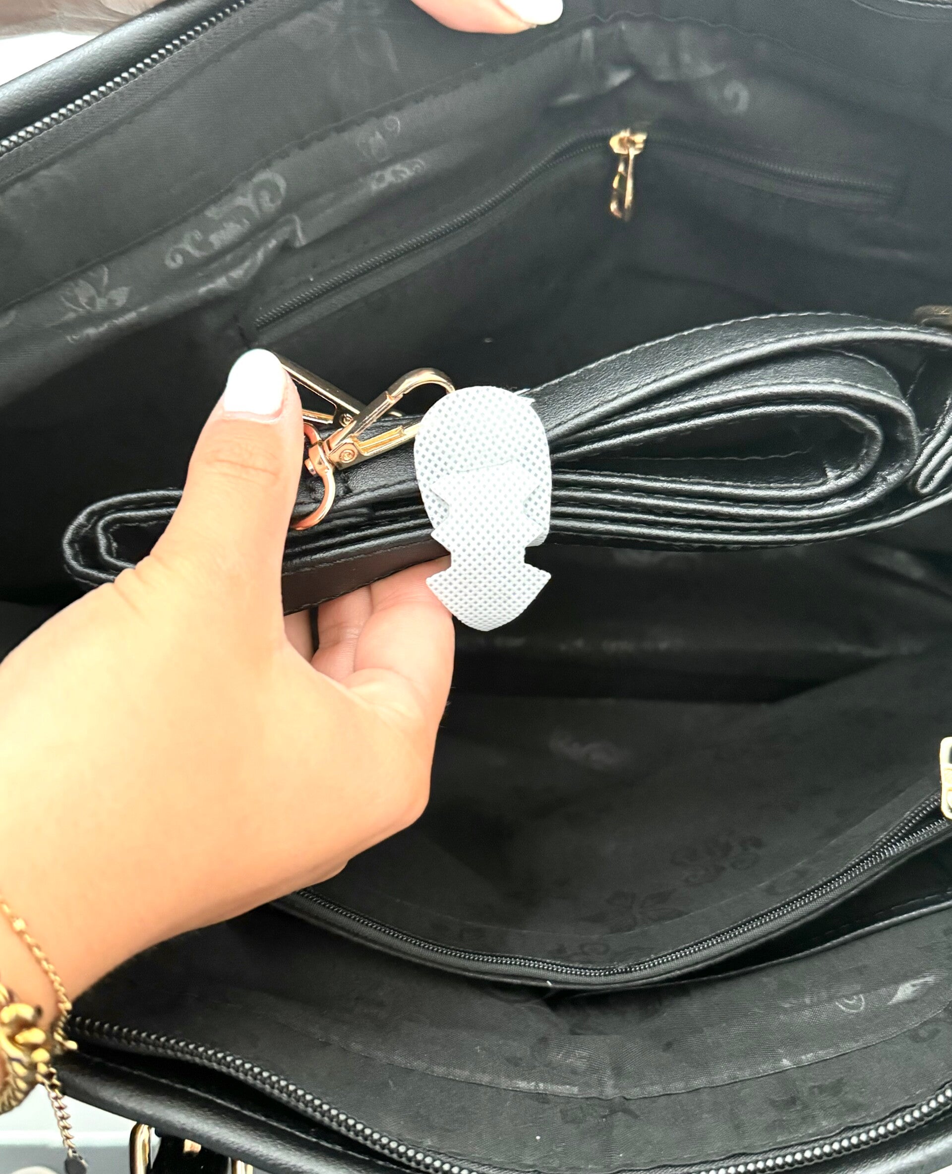 Met lange riem om op heuphoogte ook te kunnen dragen.