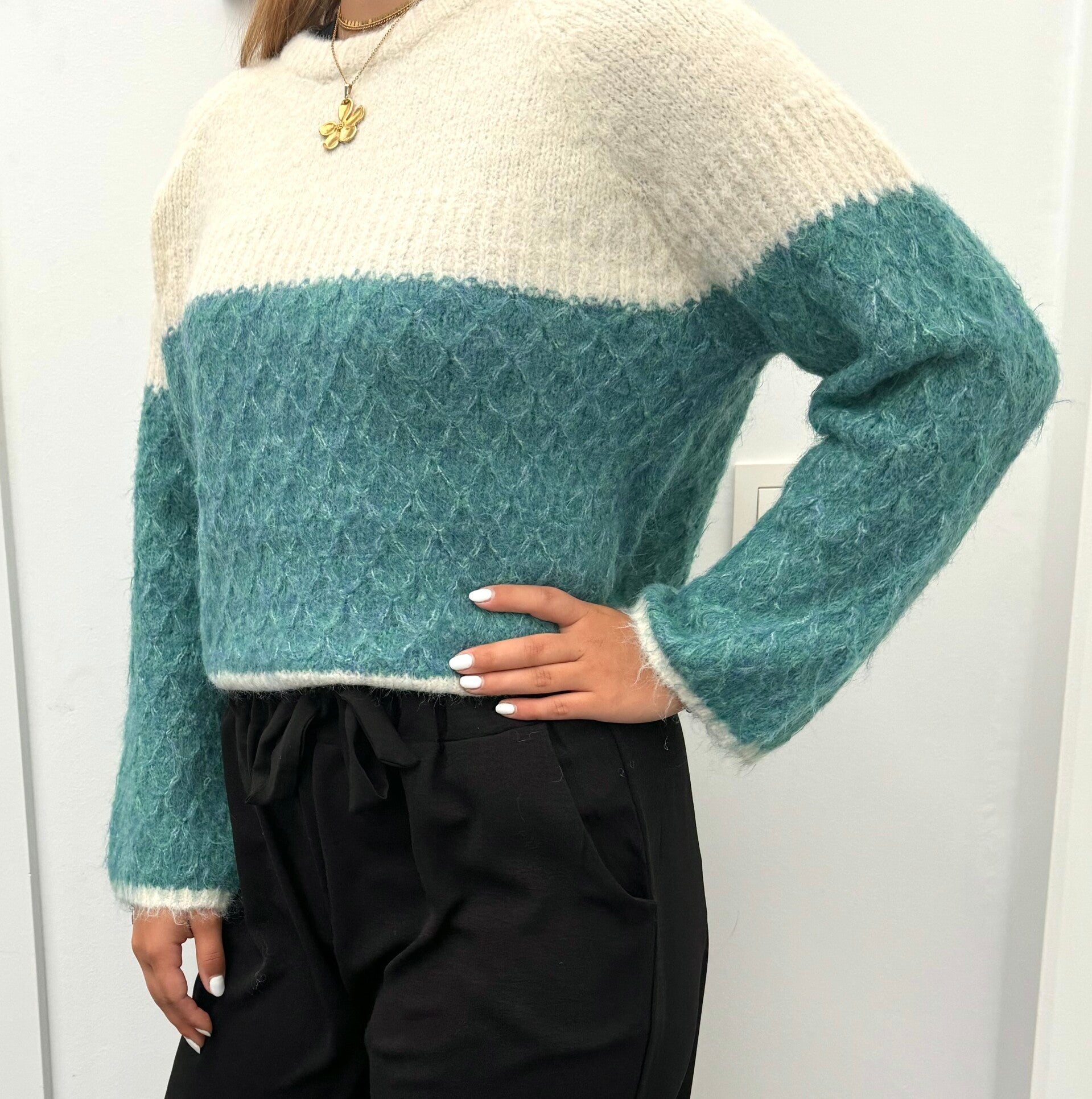 59% recycled polyester, 21% nylon, 11% polyester, 8% wol, 1% spandex